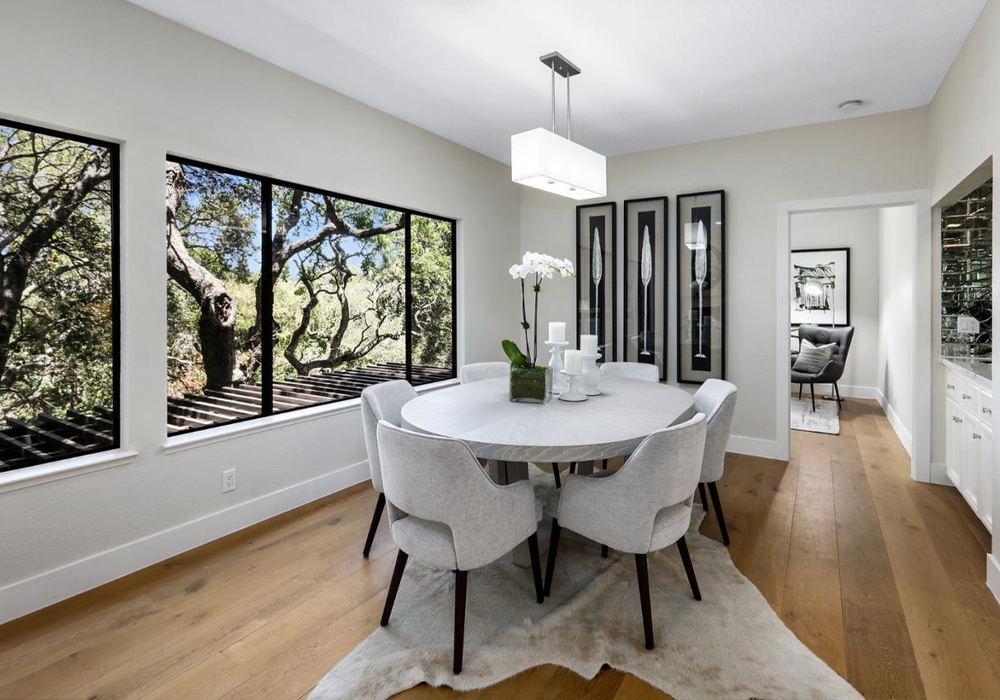 New flooring, interior painting, new baseboards and trim, door enhancement, hardware installation, dining room enhancement, kitchen enhancement, master bathroom refresh, lighting.